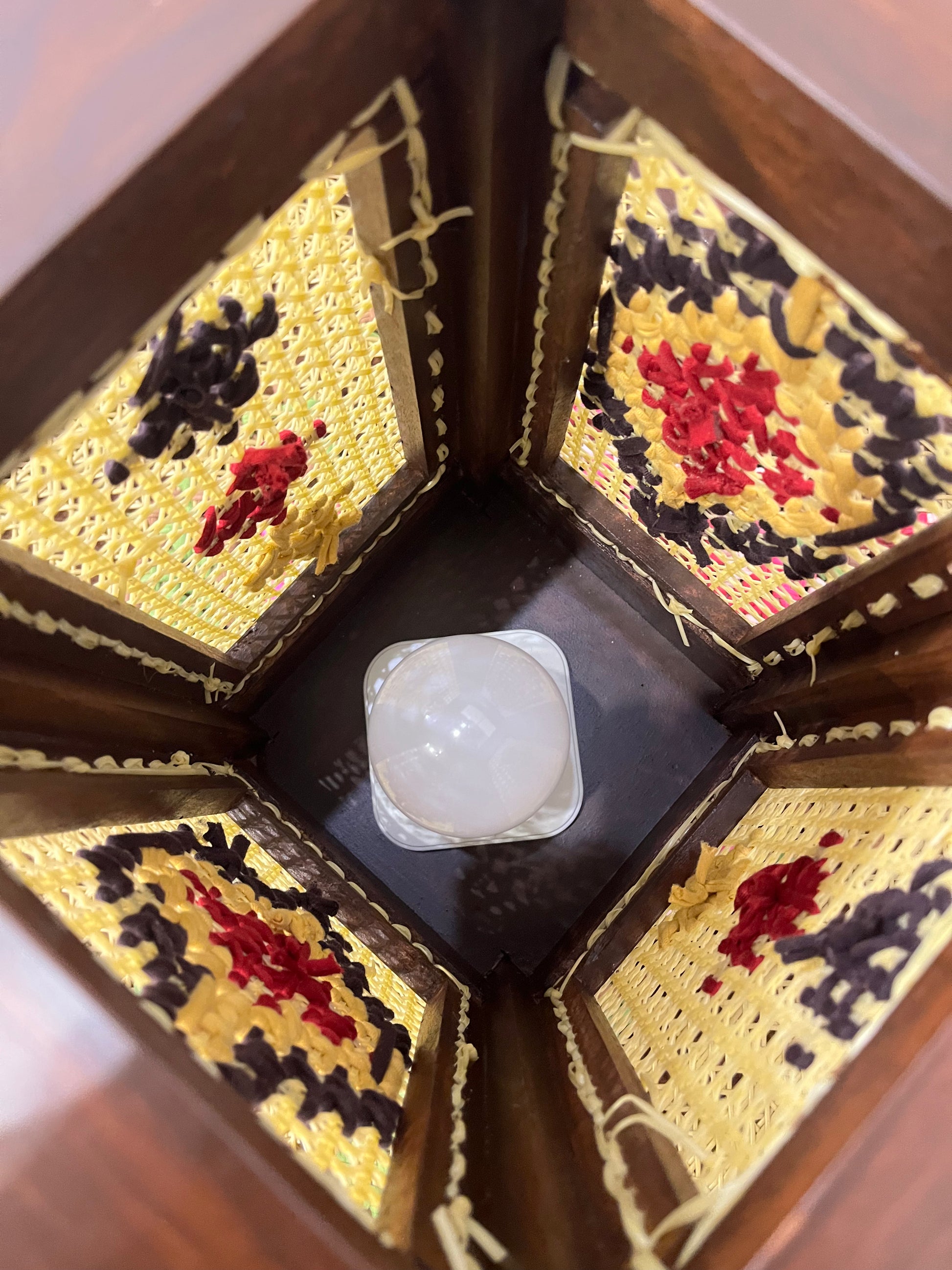• Lighting Style: Soft, ambient glow through woven rattan.